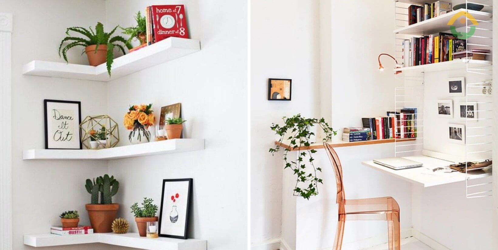 Thiết kế lại hành lang hoặc tận dụng diện tích hành lang thành khu vực chức năng, chẳng hạn kệ sách, kệ trang trí hoặc không gian làm việc nhỏ gọn để tiết kiệm diện tích, tăng không gian sử dụng thực tế.